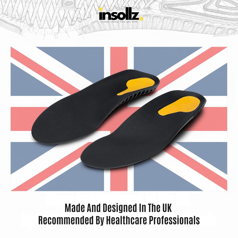 - Made in the UK and designed by specialists in orthotics. Our unique design inserts provide essential lift and cushioning to help correct overpronation and flat feet by offering a high support arch. Insoles made through experience and know how.