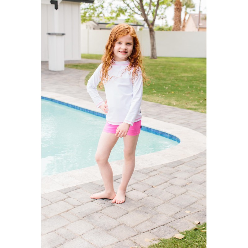 Kids will enjoy this super-comfortable swimming rashguard while parents will love the high-quality fabric, SPF/UPF 50+ protection, and Made in the USA tag. The subtle but cool contrast stitching creates a stylish modern design.
