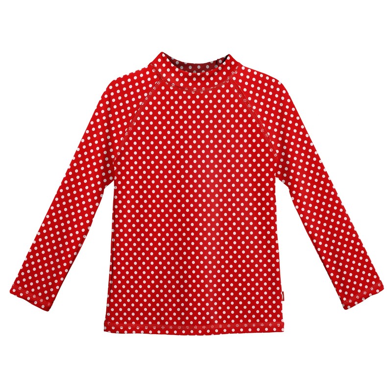 Made in USA Long Sleeve Girls' Rashguard Swimming Suit Swim Tshirt Tee UPF50+ Sun Protection for Beach Pool Summer Fun, Red w. White Polkadot, 12
