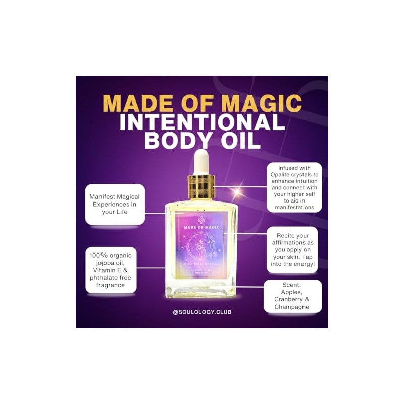 Made of Magic Intentional Luxury Body Oil, Handmade Oil with Crystals, Spiritual Oils, Draw in Magical Experiences, Intention Oils, Organic Oils for Face, Body, Hair, Nails, Phthalate-Free Fragrance