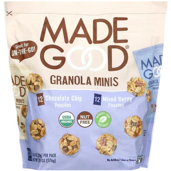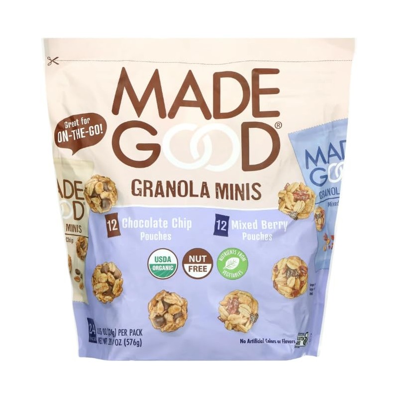 Made Really Good Granola Minis, Chocolate Chip and Mixed Berry, 24 Pouches, USDA Organic, Nut Free