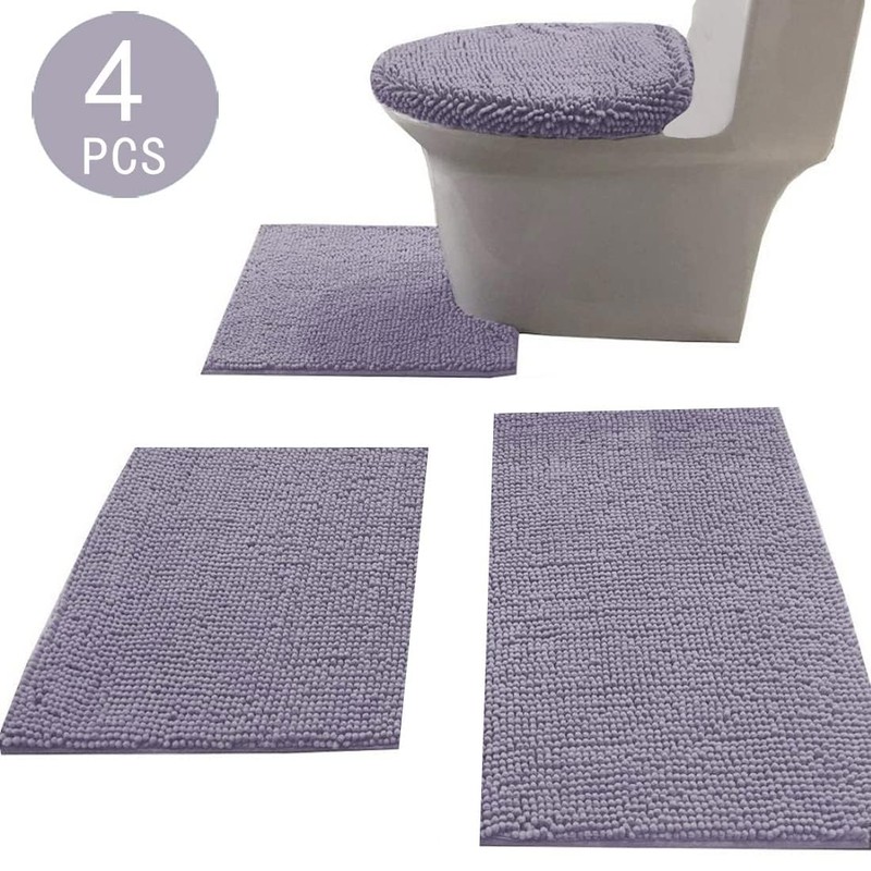 Madeals Chenille Bath Rug Set 4 Piece with Toilet Lid Cover and Rug Set Combo, Soft Shaggy Bath Rug Set 3 Piece and U-Shaped Toilet Floor Rug Grey