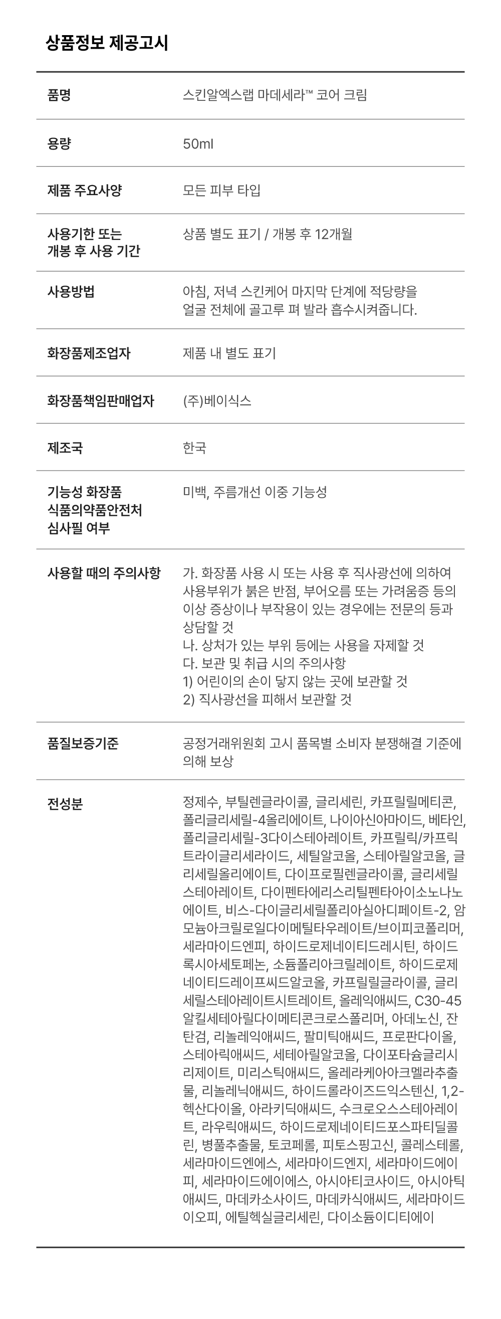 마데세라 코어 크림 50ml