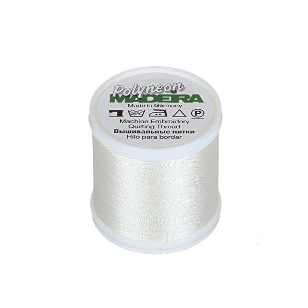 MADEIRA 9845-1803 2 Ply Polyneon Polyester Embroidery Thread, 40wt/135D 440yd, Off White