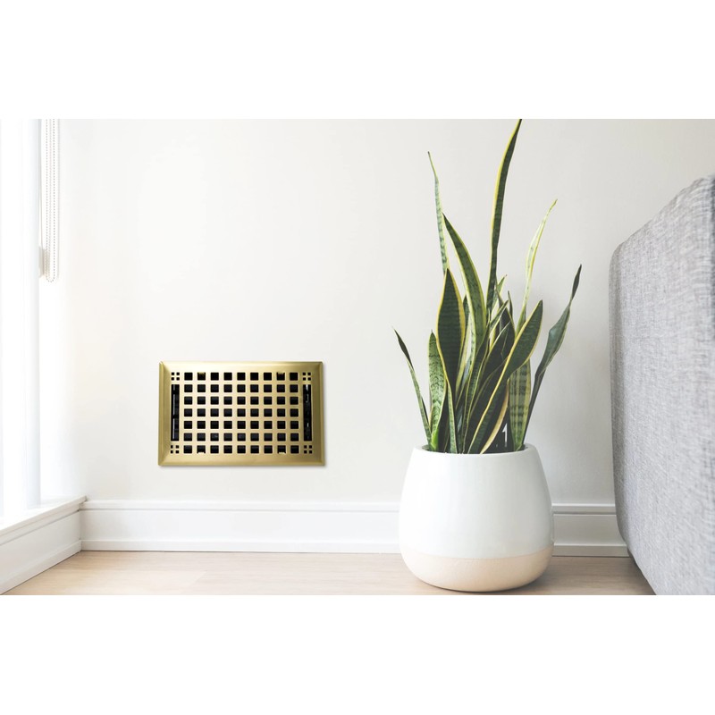 Madelyn Carter Contemporary Artisan Style Vent Cover, Solid Cast Steel Interior, Controls Air Flow, 6 x 10 inches (Overall Face: 7.25 x 11.5 inches), Brushed Brass