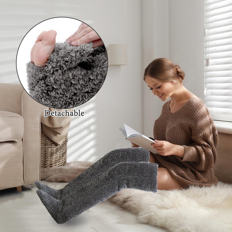 - 【Innovative Design】Our knee high fluffy socks are designed to be worn over the knee, providing excellent warmth for your feet and knees. The thickened goose down design enhances insulation, while the soft, long material with foot holes offers enhanced freedom of movement. The exposed bottom design of the thigh high leg warmers allows for comfortable wear both indoors and outdoors.