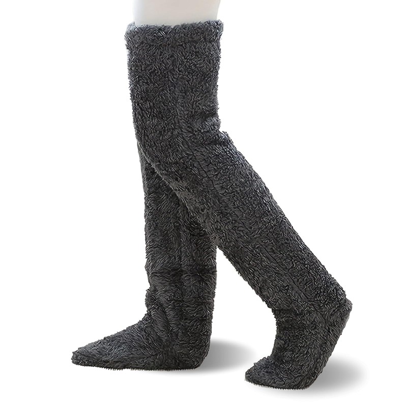 This over-the-knee long fluffy socks is long enough to keep your ankles warm and accommodates leggings, pajamas or pants for full coverage comfort.