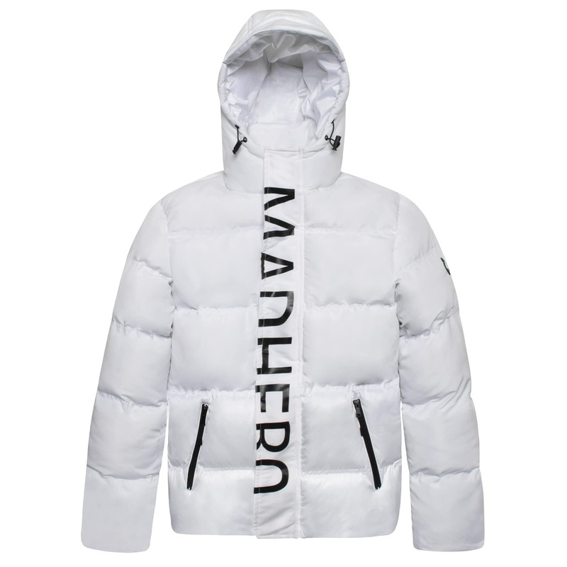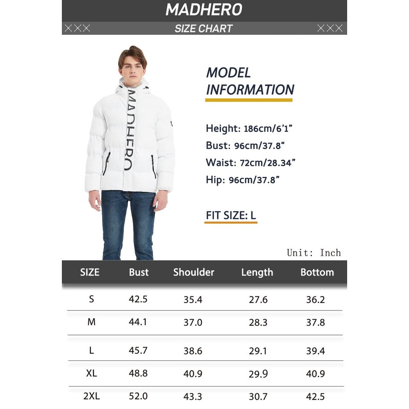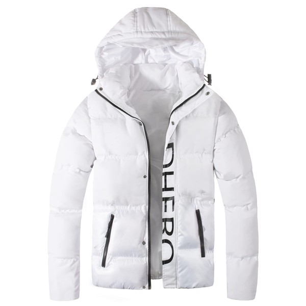 MADHERO Men's Puffer Jacket Water-Resistant Insulated Down Alternative Outerwear Coats White with Logo Size M