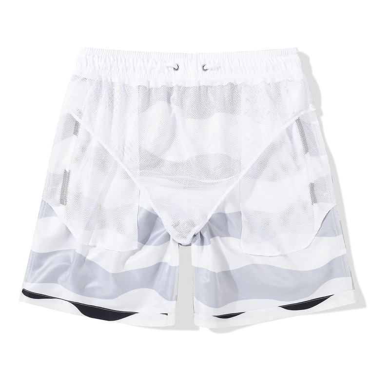 MADHERO Mens Short Swim Trunks 5 Inch Inseam Quick Dry Print Beach Shorts with Mesh Lining and Pockets Black White Wave Size 2XL