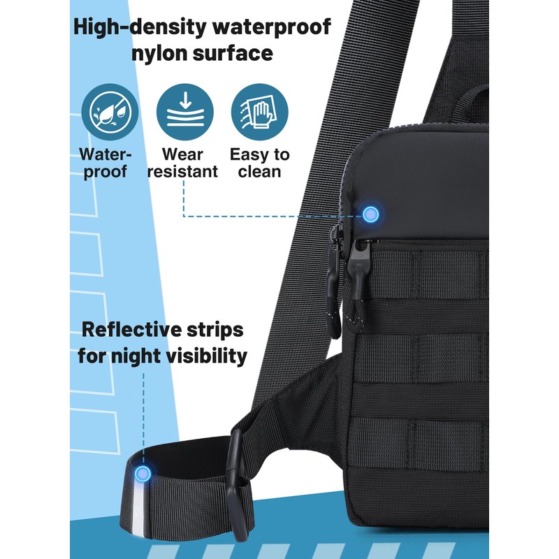 - Molle Webbing & High-Visibility Orange Lining: Three rows of molle webbing allow easy attachment of extra gear like phone holsters, pens, flashlights, or sunglasses. The bright orange lining enhances visibility, making the small sling bag easy to find items, perfect for commuting, day trips, or light hikes.