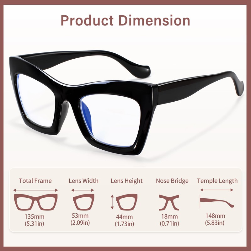 - 【Oversized Cateye Design】The bold and chic oversized style will bring you a unique trendy appearance in lifestyle when relieving eye fatigue,headache and blurry vision caused long time exposion to blue light ray and glare.