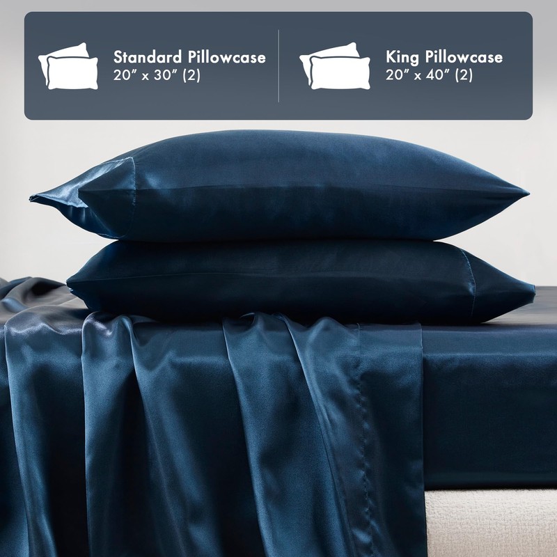 Madison Park Essentials Set of 2 Satin King Pillowcase for Hair & Skin, Luxuriously Soft, Silky with Natural Sheen Luster, Cool to Touch, Wrinkle-Free, Machine Washable, King Midnight Blue 2 Piece