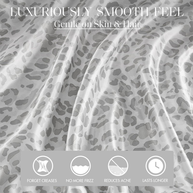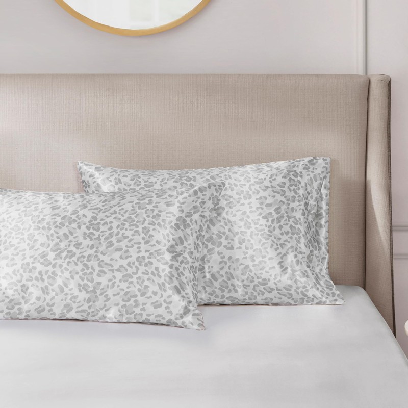 Madison Park Essentials Set of 2 Satin Pillowcase for Hair & Skin, Luxuriously Soft, Silky with Natural Sheen Luster, Cool to Touch, Wrinkle-Free, Machine Washable, Standard Gray Leopard 2 Piece