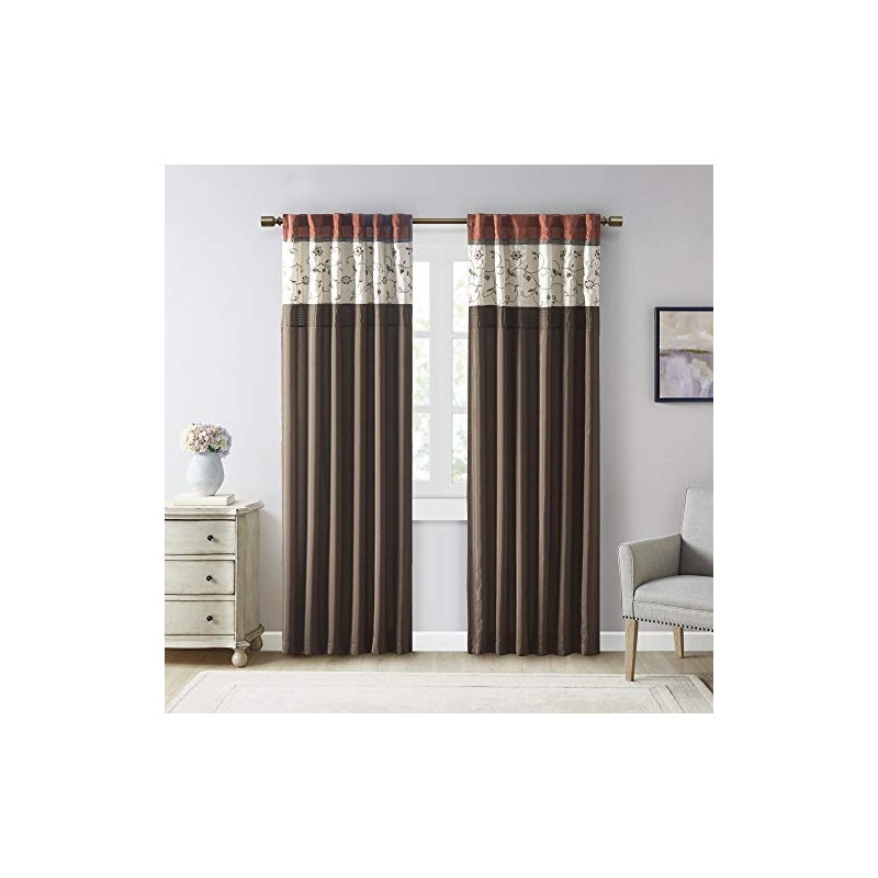 Madison Park Serene Embroidered Room Darkening Rod Pocket/Back Tab Treatment Curtain Window Panel Drape for Bedroom Livingroom and Dorm, 50x84, Spice