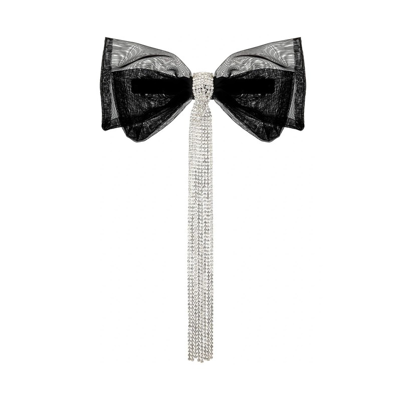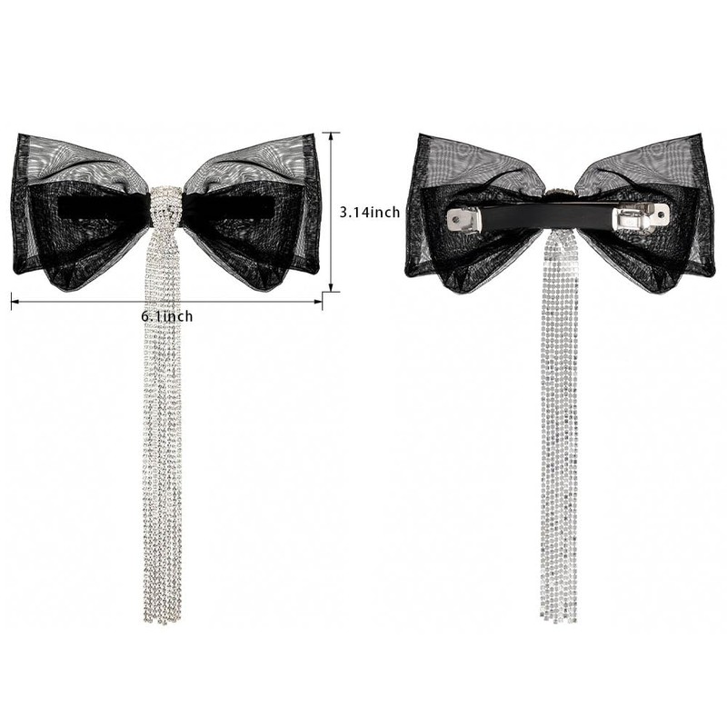 MADISON TYLER Rhinestone Tassels Black Hair Bows for Women | Oraganza Bow Hair Clip French Barrettes | Hair Accessories for Long Hair, Curly, Wavy, Fine, Thick | Gifts for Women