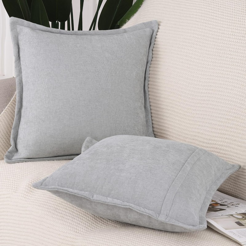 Madizz Fringe Chenille Cushion Covers Set of 2 Super Soft Boho Throw Pillow Covers Decorative Plain Throw Pillowcases Modern Home Decor for Sofa Bedroom Light Grey 16x16 inch, 40x40 cm