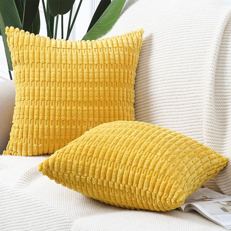 Madizz Pack of 2 Boho Striped Corduroy Throw Pillow Covers 20x20 inch, 50x50 cm, Yellow Soft Decorative Cushion Cover for Sofa Bedroom Pillow Shell