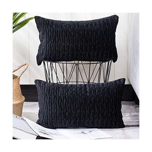 Madizz Pack of 2 Super Soft Velvet Decorative Throw Pillow Covers with Texture Luxury Style Cushion Case Pillow Shell for Sofa Bedroom Black 12x20 inch Rectangular