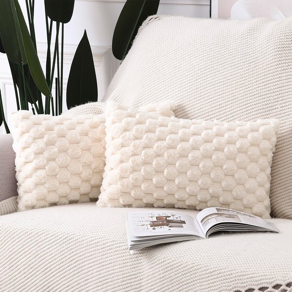 Madizz Set of 2 Faux Fur Plush Decorative Cushion Covers Soft Decorative Cushion Cover for Sofa Bedroom Cushion Shell Beige 30 x 50 cm