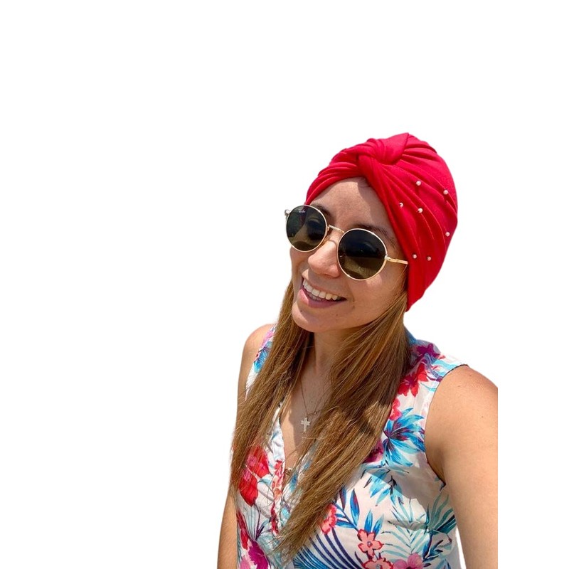 - 3 Turbantes Rojo, Ivory, Canela. 95% Algodón 5% Spandex