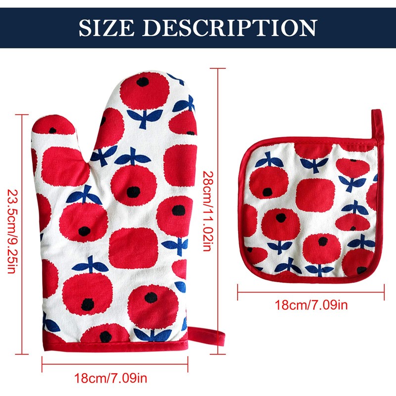 - (Size) Insulation pad: 7.1 x 7.1 inches (18 x 18 cm); Heat resistant gloves: 7.1 x 11.0 inches (1