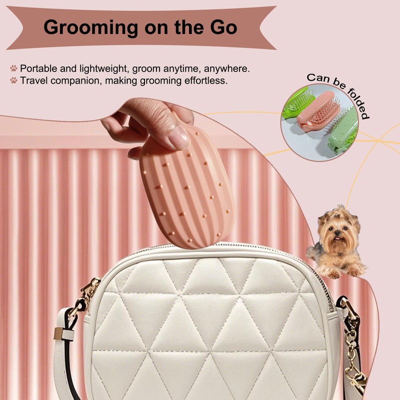 MAEELOU Foldable Cactus Puppy Brush Small Dogs Soft Bristles Grooming Tool Yorkie Shih Tzu Maltipoo Maltese (Pink)