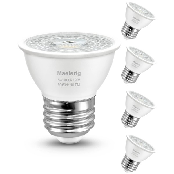 Maelsrlg PAR16 LED Short Neck Recessed Spotlight Bulb, 6W(60W Equivalent) Curio Cabinet Light Bulb, Flicker-Free, 600 Lumens, Daylight 5000K, E26 Medium Base, Non-Dimmable, 4-Pack