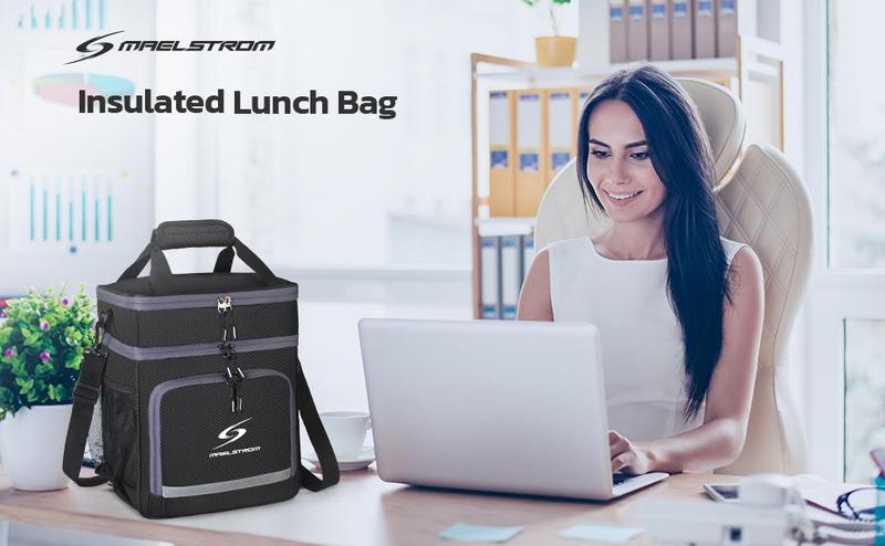 Maelstrom Lunch Box for Men,Insulated Lunch Bag Women/Men,Leakproof Lunch Cooler Bag, Lunch Tote Bag - Color: Gray, Size: Single Layer(15L/24cans)