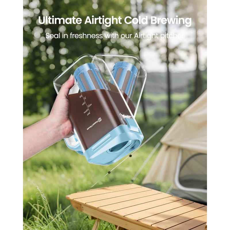 - Convenient Design: Cold brew pitcher and its filter are designed with precise scales on its body for accurate coffee making ratio. This coffee maker brewer’s filter with removable bottom cover is easier to clean residues compared with all-in-one filter. Top cover on powder compartment prevents coffee powder floating, ensures thorough immersion, and keeps lid clean. Filter can be placed at spout to prevent spills, enhancing convenience and cleanliness.