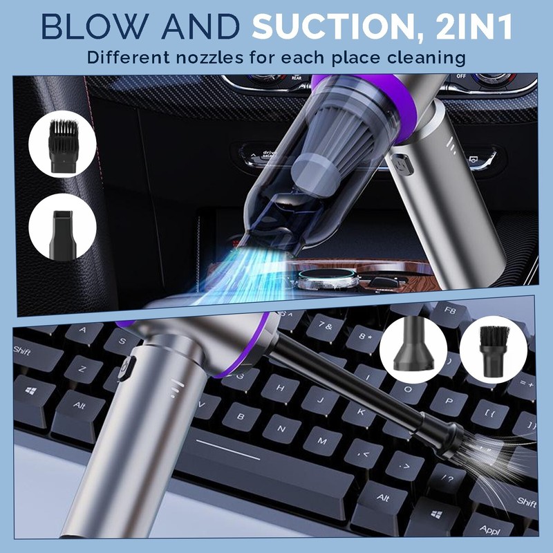 Forget about constantly replacing batteries. This vacuumis equipped with a USB rechargeable lithium-ion battery, offering botheco-friendliness and cost-efficiency. It charges quickly via any USBport—whether it’s your car charger, laptop, or power bank—making itultra-convenient, especially on the go. Once charged, it delivers a strong andconsistent power output, giving you enough time to finish your cleaning jobswithout interruption. The smart battery management system ensures longevity andsafety, preventing overcharging and overheating. The ability to rechargeanywhere with USB makes this vacuum a modern solution for today’s connectedlifestyle.