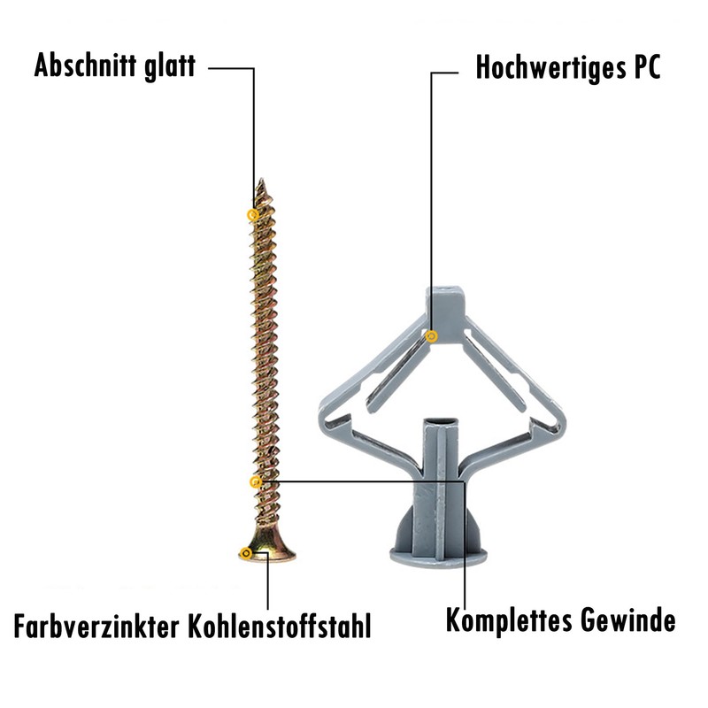 - Easy to use: drill a hole in the wall whose depth and diameter correspond to the dowel. Hammer the dowel into the wall with a hammer and then screw the screw into the dowel clockwise until it is flush. No professional tools required!