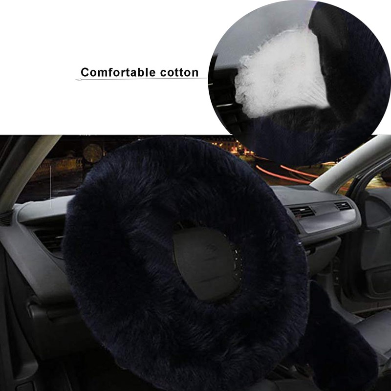 - 【3-PIECE SET】 – Includes 1 steering wheel cover, 1 gear shift cover, and 1 handbrake cover. Tightly packed for delivery, but the wool will fluff up with a gentle shake or blow-dry for a full, plush look.