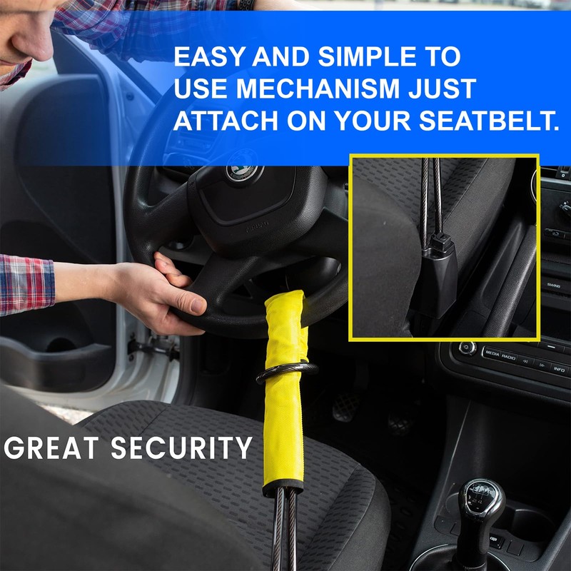 - Multi-Functional: In addition to securing the steering wheel and seatbelt, this lock can also be used to secure your handbag to the seat, making it an excellent deterrent against theft of personal items inside your car.