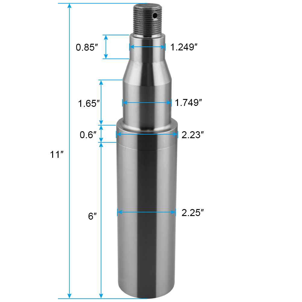 The end of the spindle (that you would weld to) is 2.25" diameter