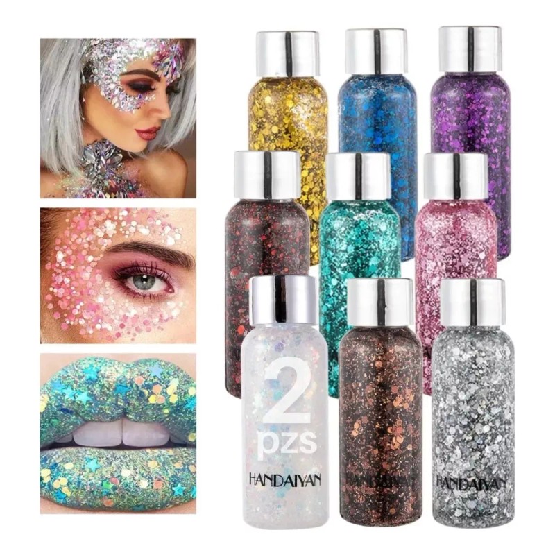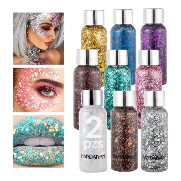 Mafab 2 Pzs Body Glitter Maquillaje Cabello Cuerpo Brillos Colores