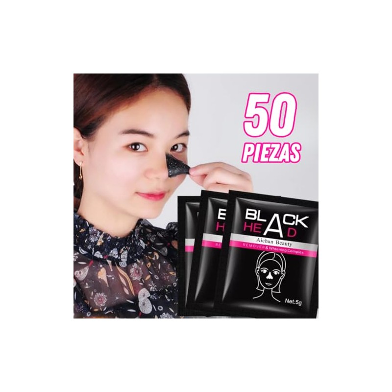 MAFAB 50 Sobres Mascarilla Negra Carbon Activado Cuidado Facial Mascarilla Negra Puntos Negros Exfoliante Nariz Elimina Barros Acne Espinillas Puntos