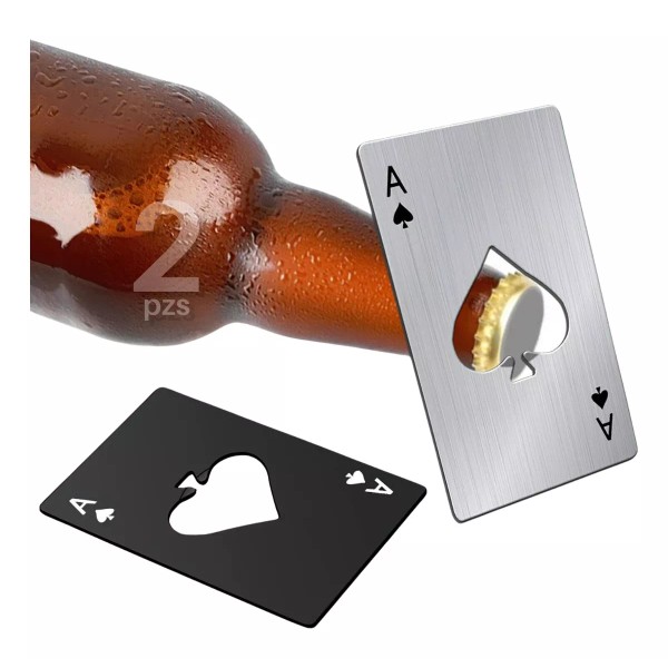 2 PIEZAS - Tarjeta Destapador Botellas Carta de póker Acero inoxidable duo