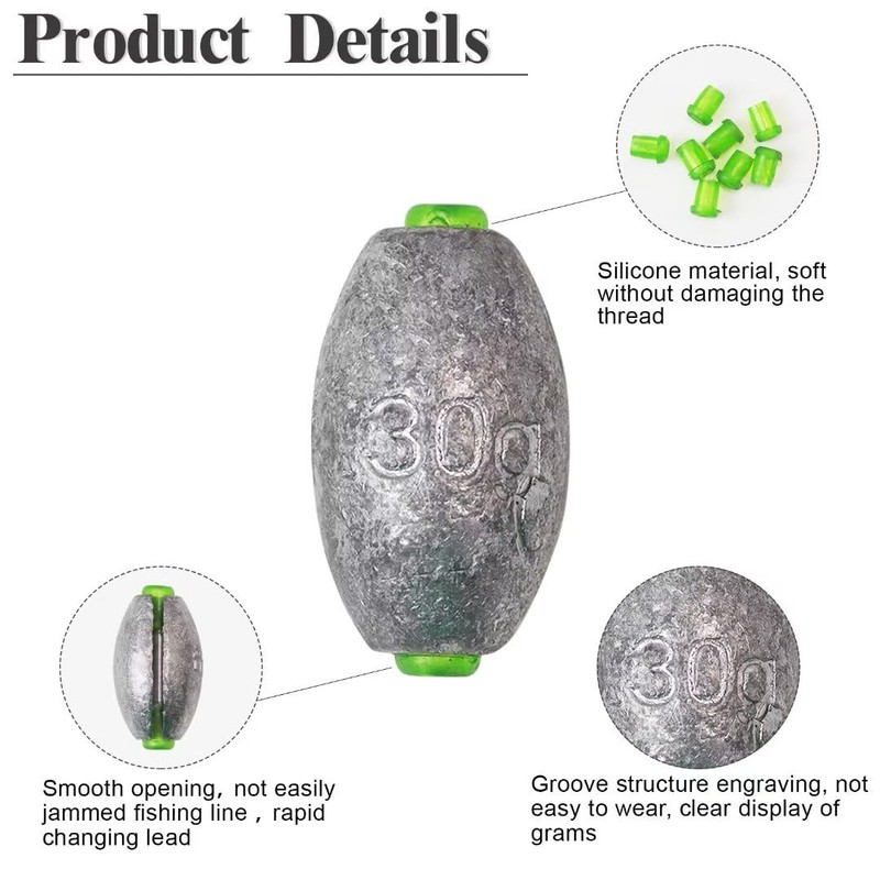 - 【Easy to Replace】 We design the lead as a movable lead, so that you can easily replace without removing the fishing line. This big holiday saves you time and allows you to spend your precious time fishing.Plastic plugs at both ends of the lead sinker can also help protect the fishing line from damage.