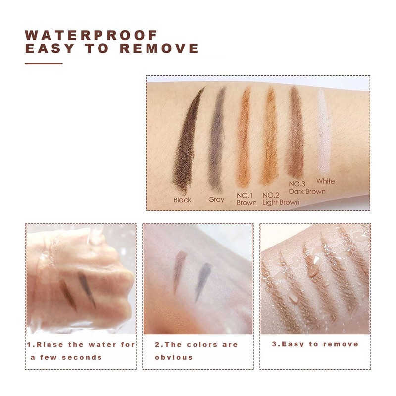 - 【Waterproof and Long lasting】You can quickly draw eyebrows shape, quickly dye eyebrow, and let the color keep all day non-fading, create the best eyebrow makeup. In addition, eyebrow pen can also prevent sweat, water and tears staining