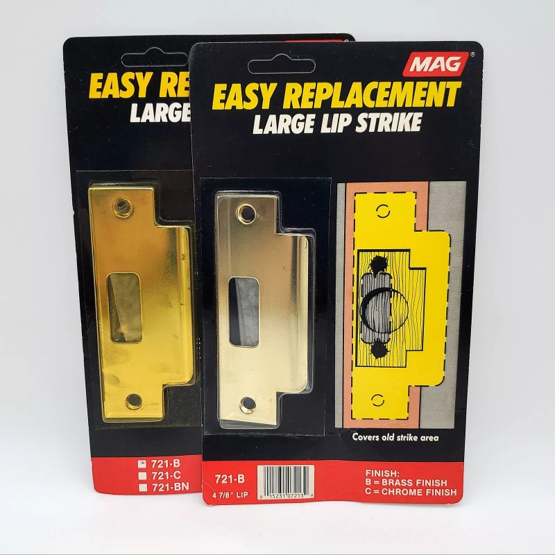 For sale is a MAG Door Strike Plate Replacement Large Lip 4-7/8" Brass 721-B Lot of 2 NOS in New condition.