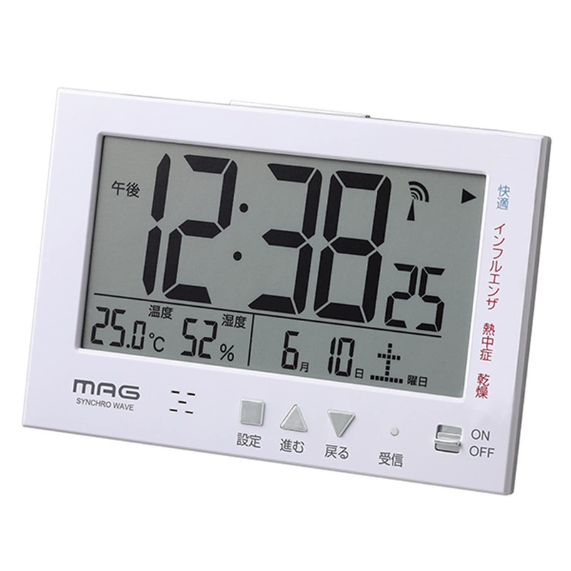 MAG(マグ) 目覚まし時計 電波 デジタル エアサーチミチビキ 環境目安表示機能 バックライト スヌーズ機能付き ホワイト T-727WH-Z
