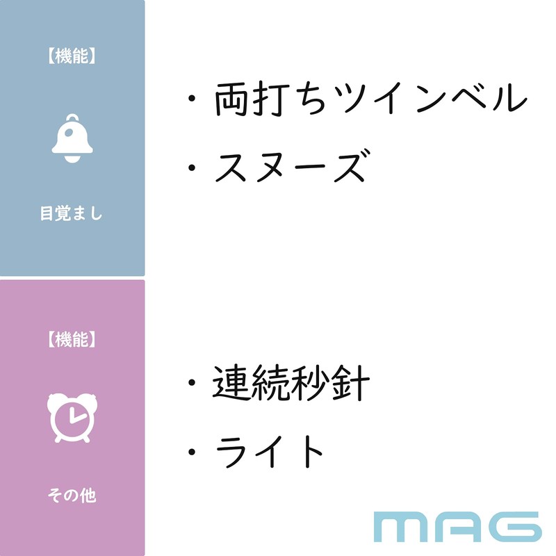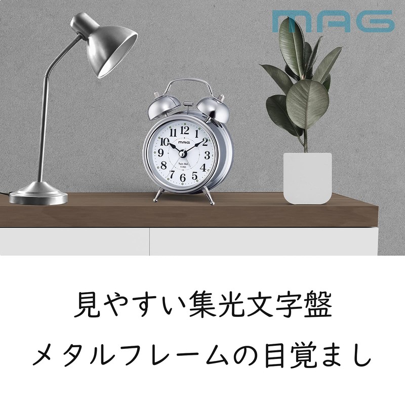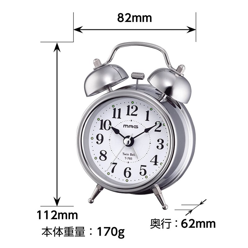 MAG T-765S-Z Bell Mini DX Alarm Clock, Loud Volume, Quiet, Continuous Second Hand, Snooze Function, Light, Silver