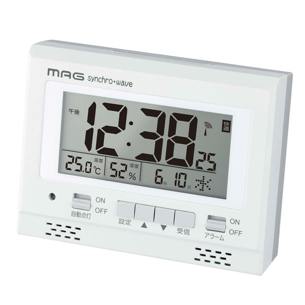 MAG T-780WH-Z Alarm Clock, Radio, Digital, White, Light Up, Automatic Lighting, Snooze, Light Included