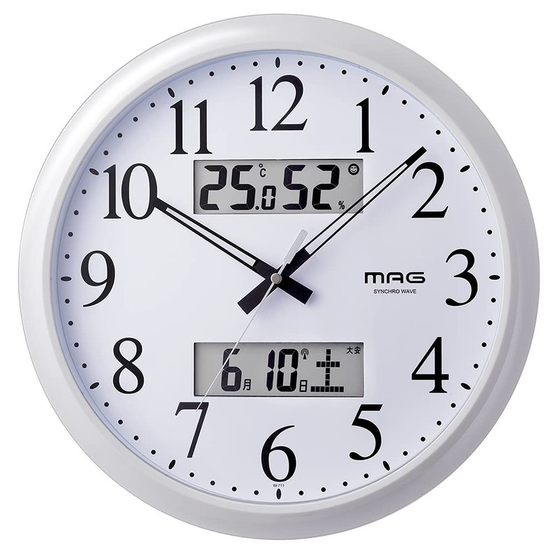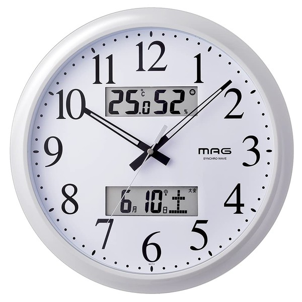 MAG(マグ) 掛け時計 電波時計 アナログ ダブルリンク 環境目安表示機能付き 温度 湿度 日付 曜日表示 ホワイト W-711WH