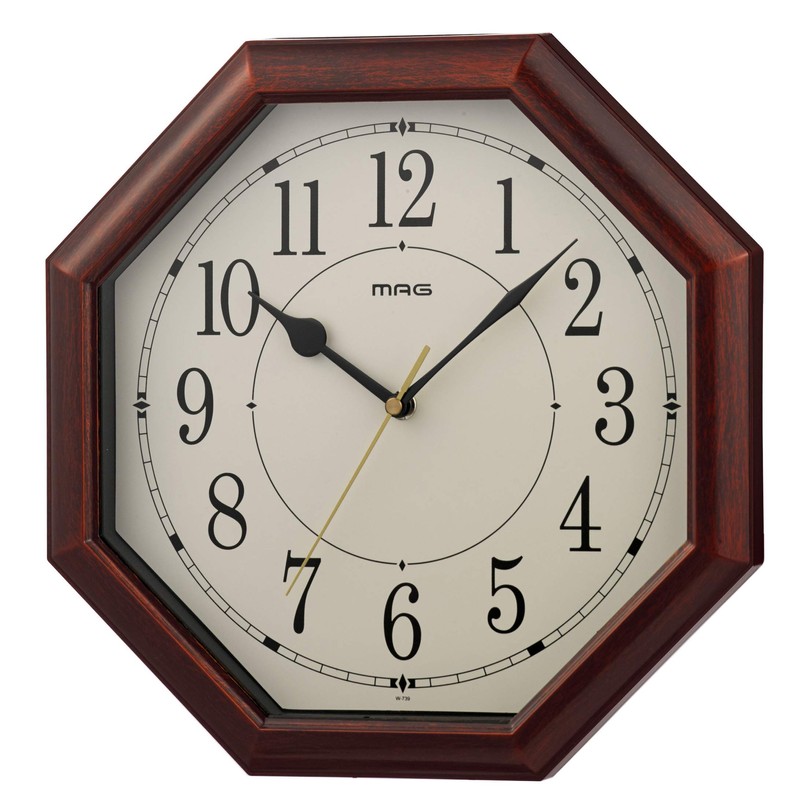 MAG W-739BR-Z Wall Clock, Radio Clock, Octagonal, Analog, Neo-Octagon, Silent, Continuous Second Hand, Wood Grain Style, Brown
