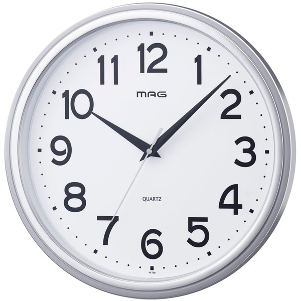 MAG W-759SM-Z Analog Wall Clock, Magmal, Silent, Continuous Second Hand, Silver