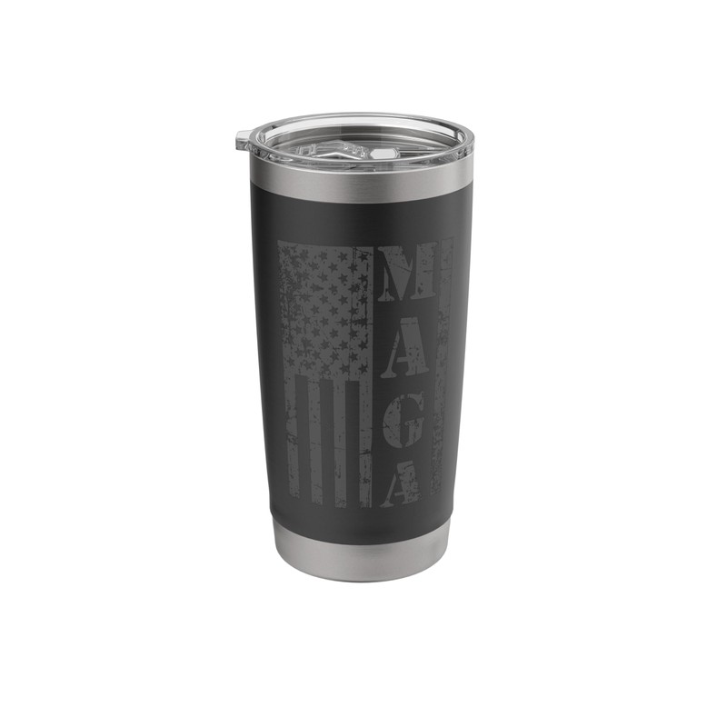MAGA Flag Patriotic Gray Distressed American Flag Stainless Steel Insulated Tumbler
