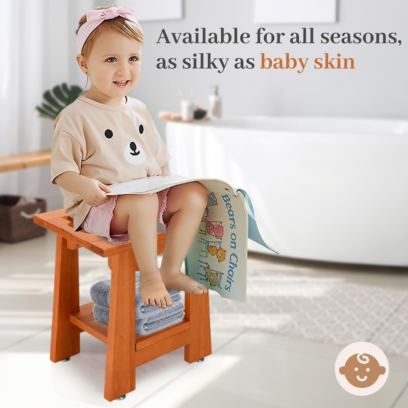 - Natural Elegance – Crafted from premium teak wood, this 14'' teak bathroom stool boasts a natural light brown hue and intricate grain patterns, adding a touch of nature and warmth to your living space