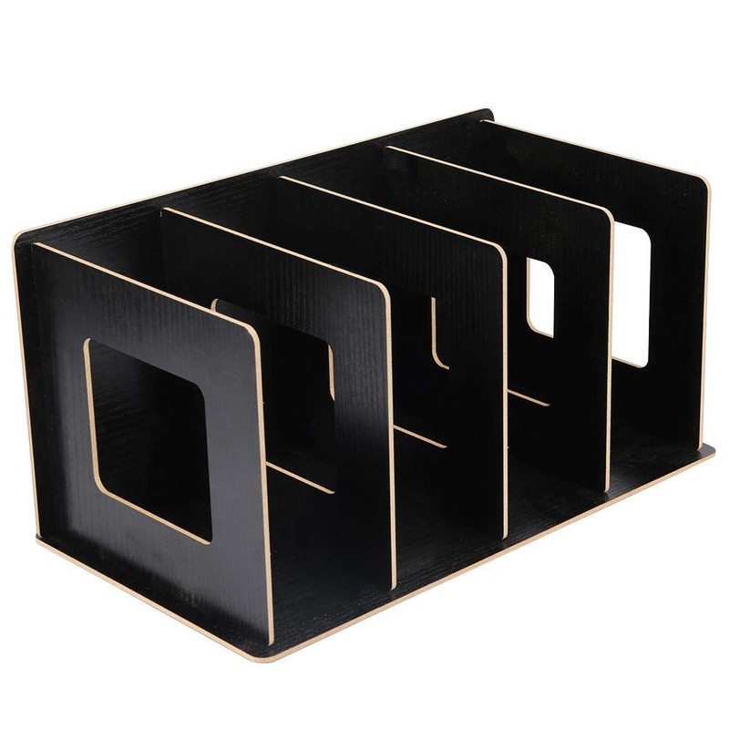 Magazine File Holder Folder Storage Desktop DIY 4 Compartment Standing Hollow Bookshelf Organizer Office Racks Displays Holds Notebooks Documents for School Working Students(Black)