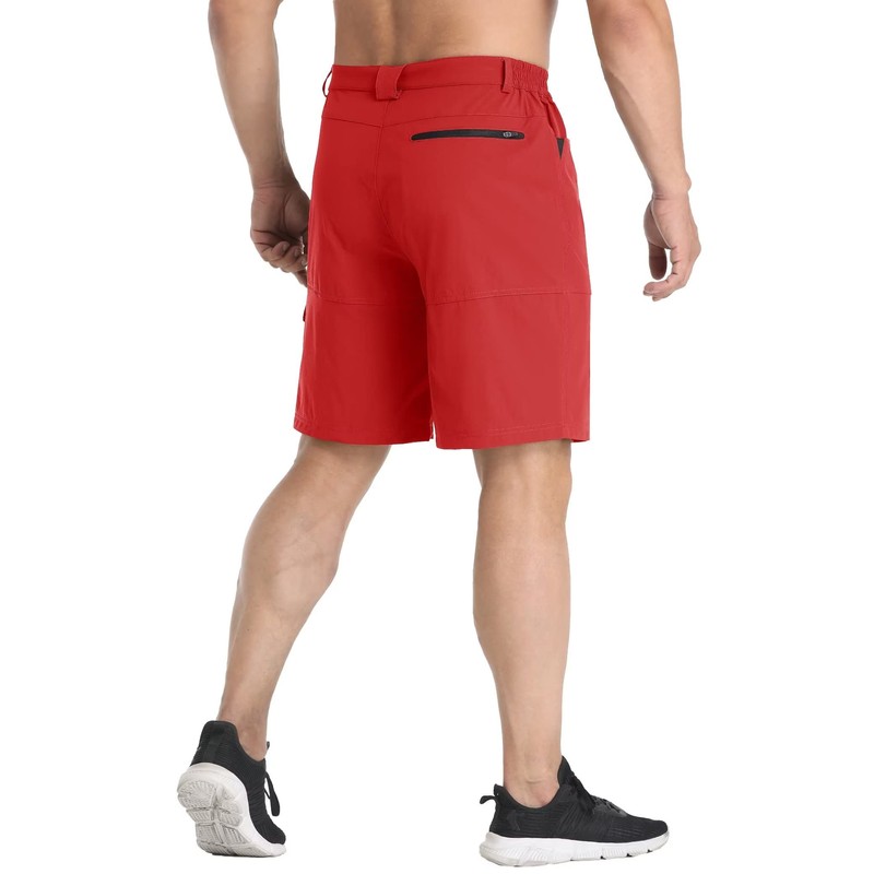 The Mens Hiking Shorts 9 inch Inseam Featured with 5 pockets, elastic waist with belt loop, button closure with zip fly, quick dry, lightweight, stretchy, breathable, waterproof, ripstop, moisture wicking